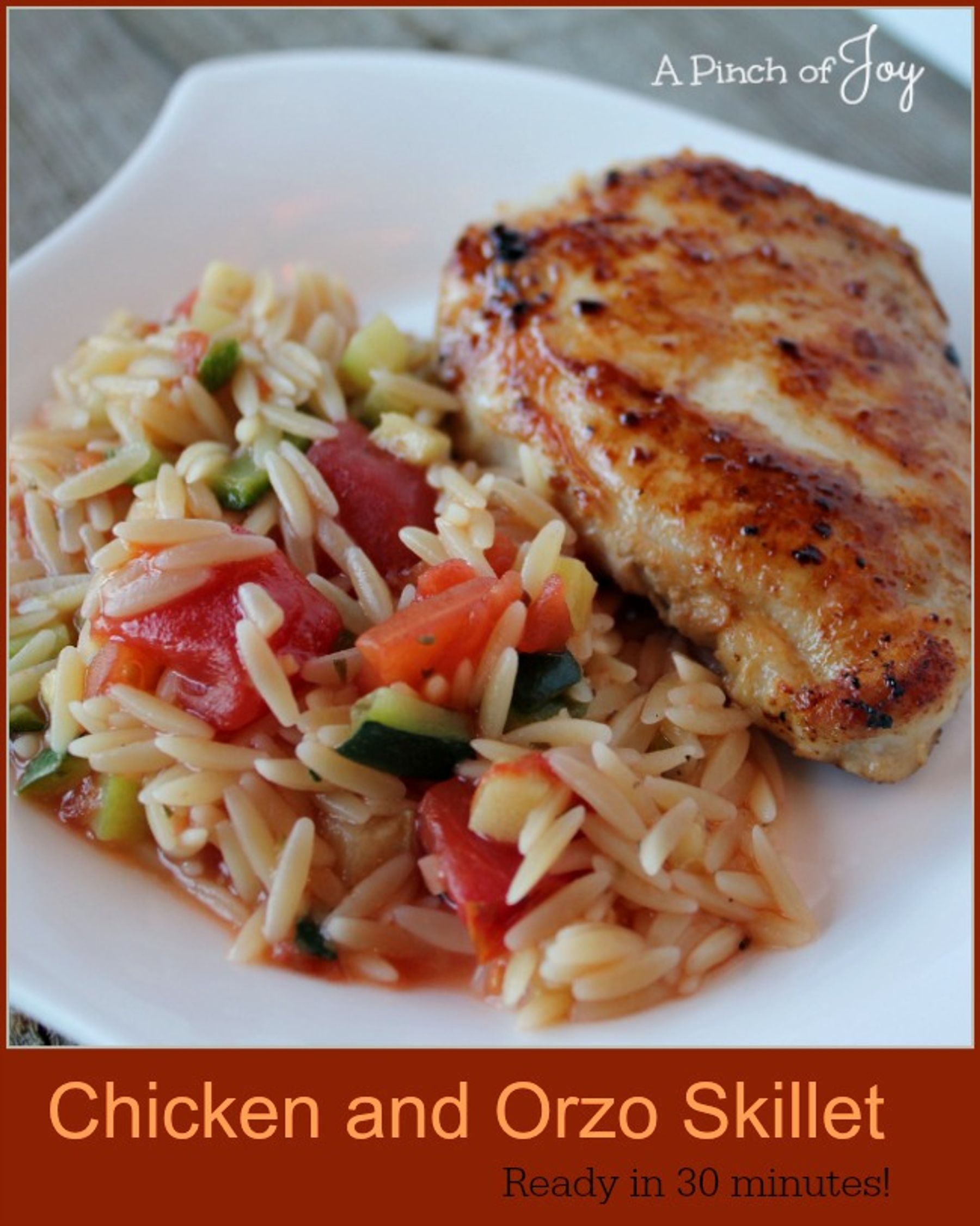 Tender chicken with a whisper of garlic, delicate orzo cooked in broth with healthy zucchini and tomatoes. On the table in about 30 minutes