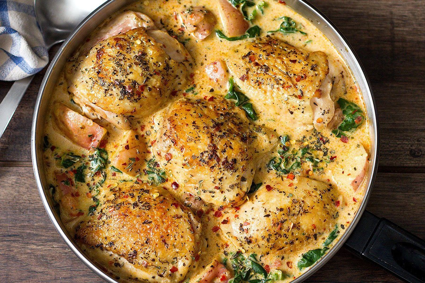 Chicken and Potatoes with Garlic Parmesan Spinach Cream Sauce — Eatwell101