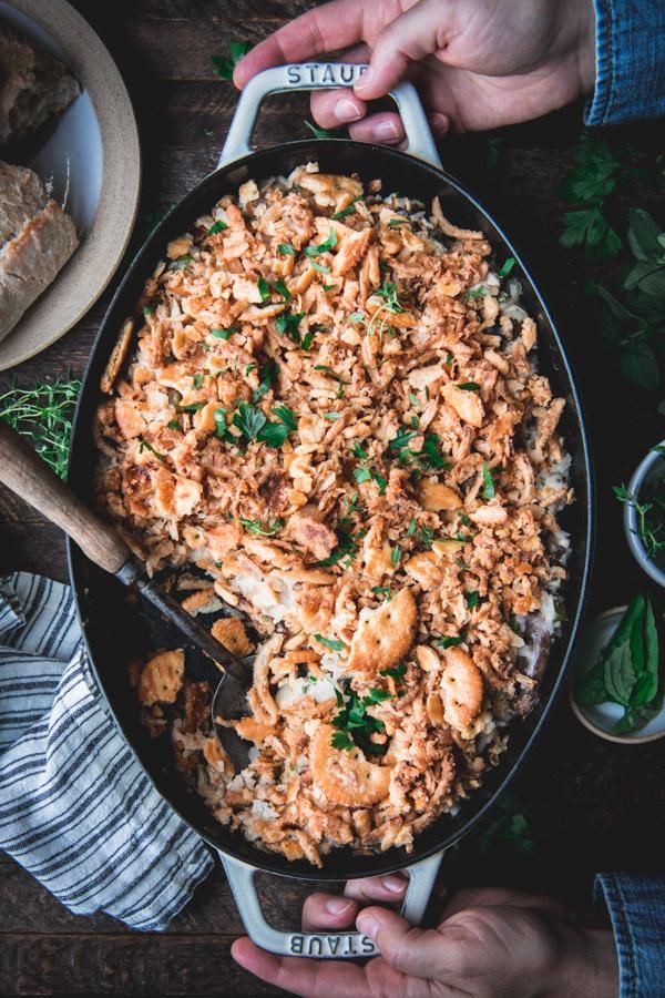 This easy Chicken and Rice Casserole with Cream of Mushroom Soup and shredded rotisserie chicken is a simple, delicious, and comforting dinner that you can make ahead. The recipe takes advantage of a few shortcuts for quick prep, but adds herbs and vegetables for plenty of fresh flavor. Serve the casserole with a simple green salad, biscuits, or a loaf of crusty bread to round out the meal!