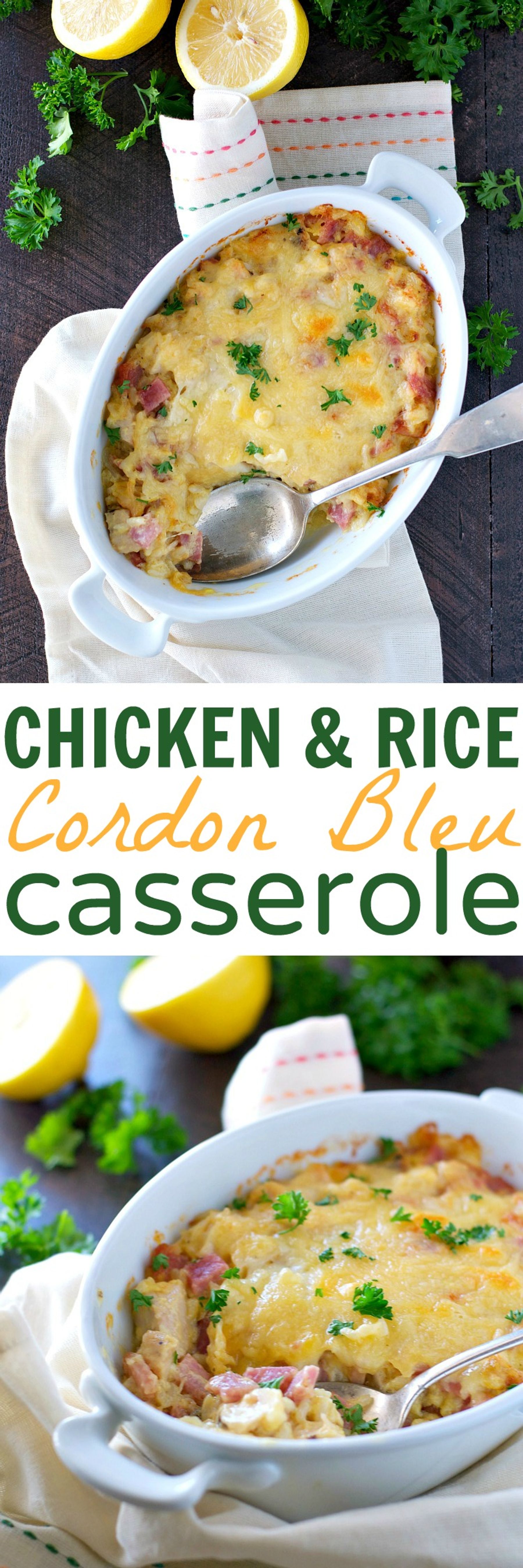 You’re going to love how easy this dump-and-bake Chicken and Rice Cordon Bleu Casserole comes together! It’s the perfect leftover ham recipe, and a great way to use up some rotisserie chicken. Topped with grated Swiss cheese, this creamy 10-minute meal is a quick comfort food dinner that the whole family will devour!
