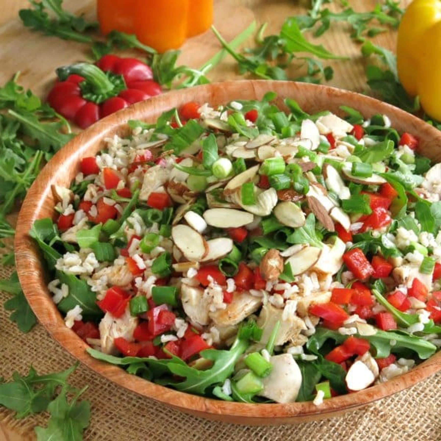 Try festive Chicken Arugula Rice Salad with Sesame Dressing when you need an energy boost. It's packed with healthy protein and superfood ingredients!