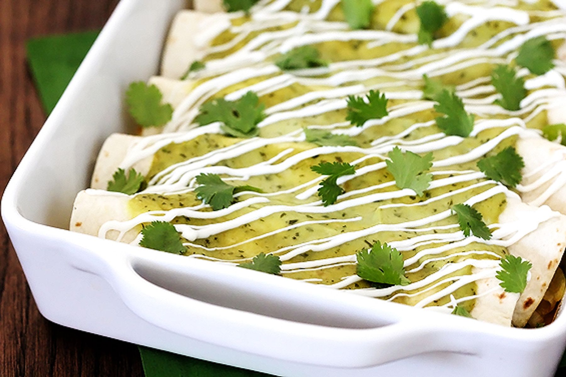 Delicious chicken enchiladas with an irresistible avocado cream sauce!