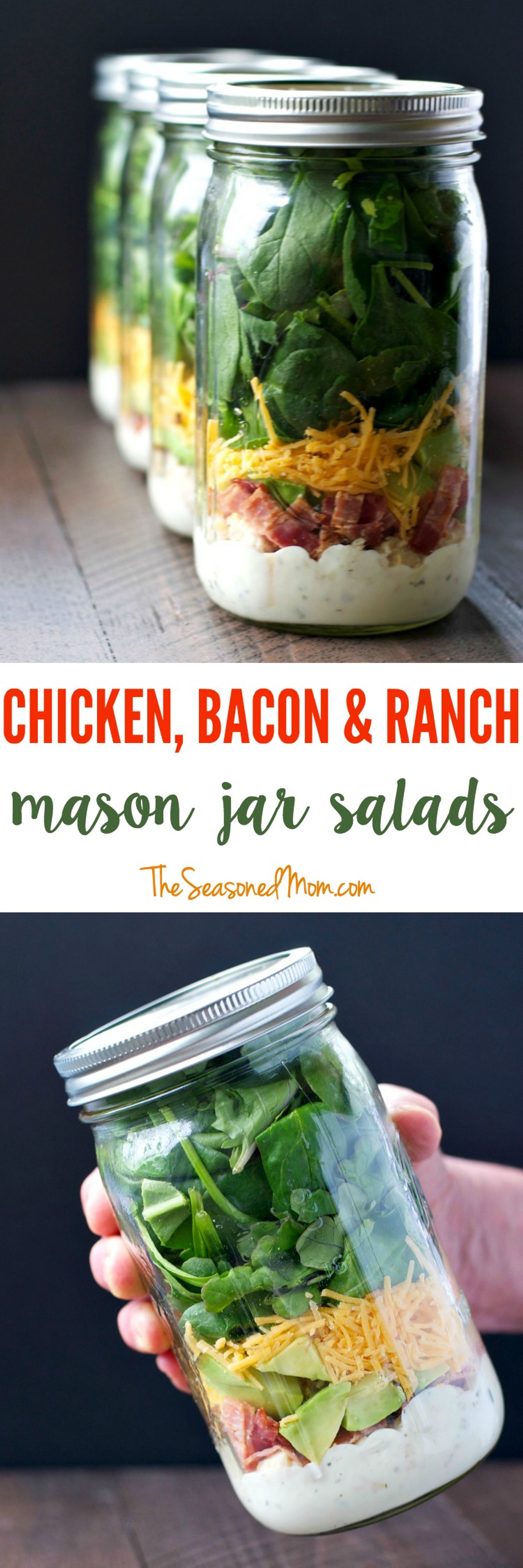 Layering ingredients in a jar is the most effective way to prepare a salad ahead of time and still keep everything fresh for days. Make these Chicken Bacon and Ranch Mason Jar Salads and you will have delicious and satisfying grab-and-go lunches ready and waiting for your busy week!