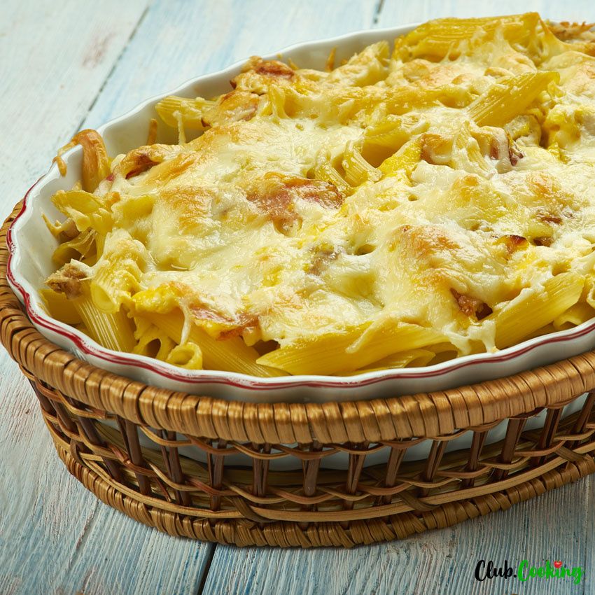 This creamy, rich, cheesy chicken bacon ranch pasta is so easy and quick to cook you wouldn't believe it. Assembled from kitchen staples and canned foods this pasta casserole is the ultimate comfort food if there is one.