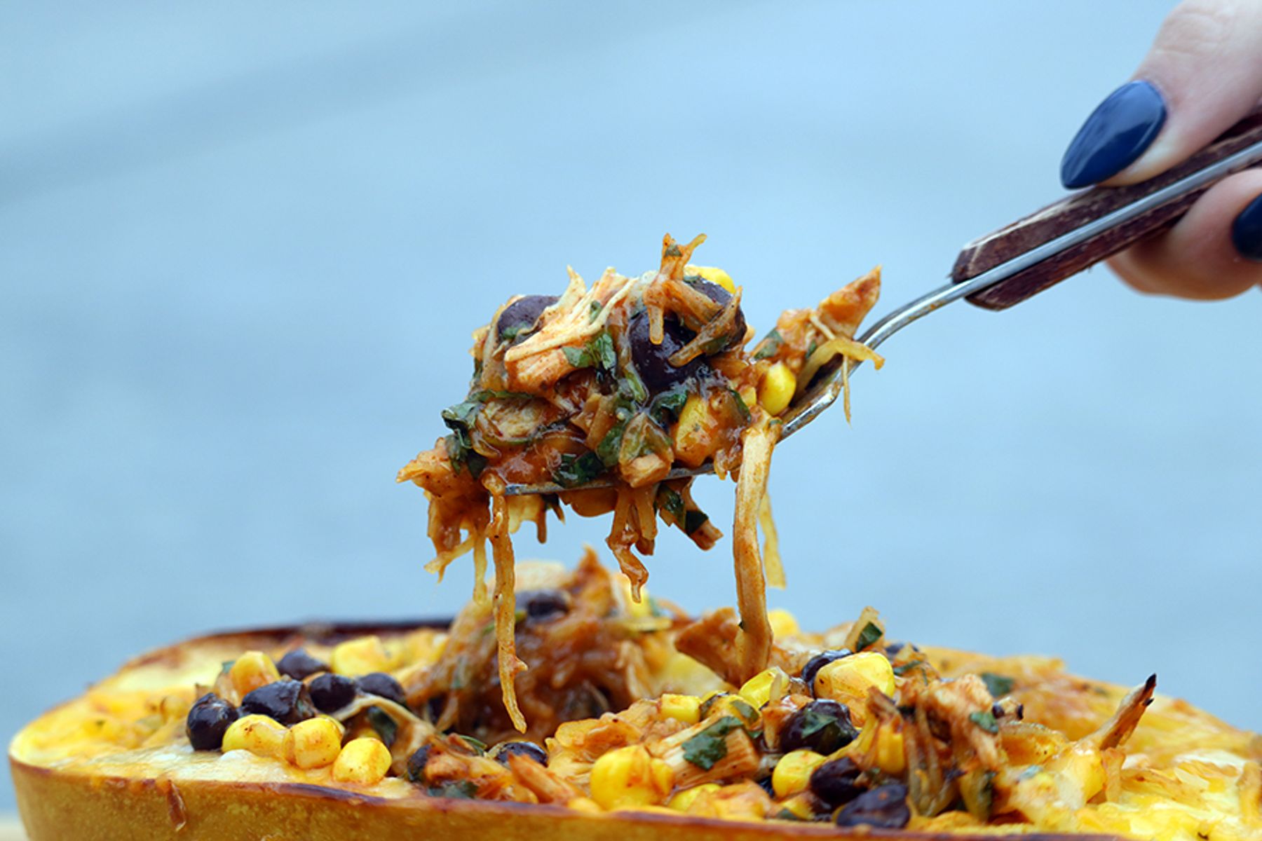 Chicken Black Bean Enchilada Stuffed Spaghetti Squash