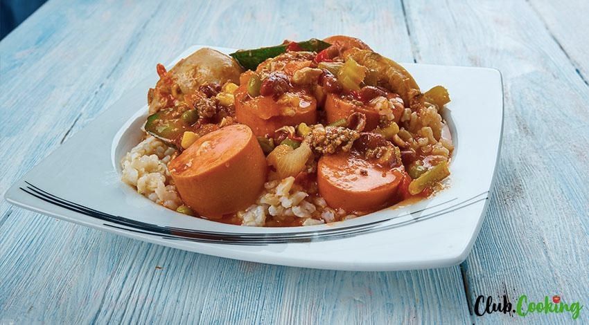 Make this delicious chicken bog, a staple southern comfort food originating in South Carolina, with this easy recipe. This filling and satisfying dish similar to jambalaya, is a hearty pot filled with shredded chicken, two types of sausage and rice.