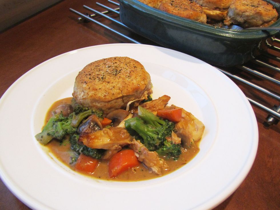 Chicken & Broccoli Pot Pie with a Biscuit Topping