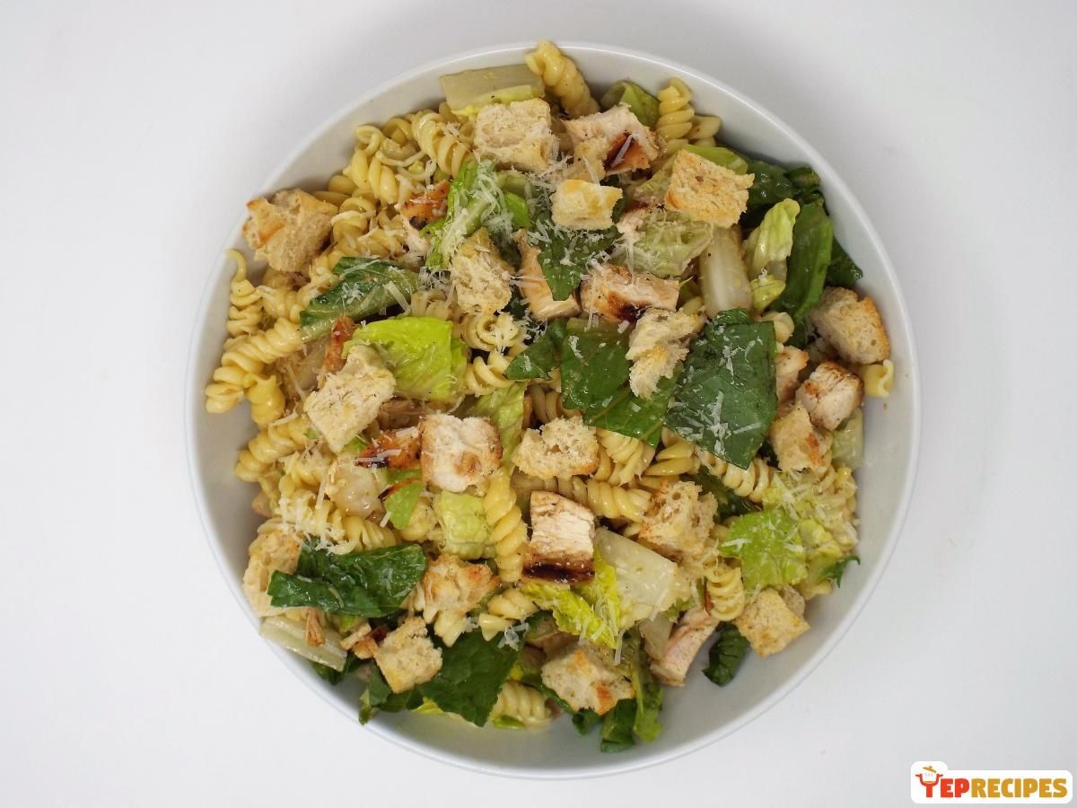 Chicken Caeser Pasta Salad YepRecipesFebruary 19, 2020 30 Rotini pasta, sliced chicken breast, and romaine lettuce tossed with a homemade caeser dressing and topped with crunchy homemade croutons.1. Preheat the oven to 350°F.See the full directions on my site