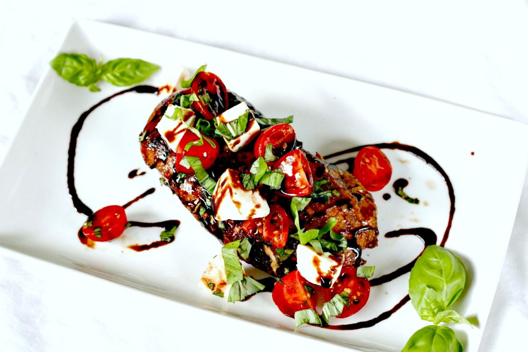 Balsamic marinated chicken, grilled to perfection, topped with fresh tomatoes, mozzarella cheese and basil.... drizzled with a decadent balsamic glaze drizzle