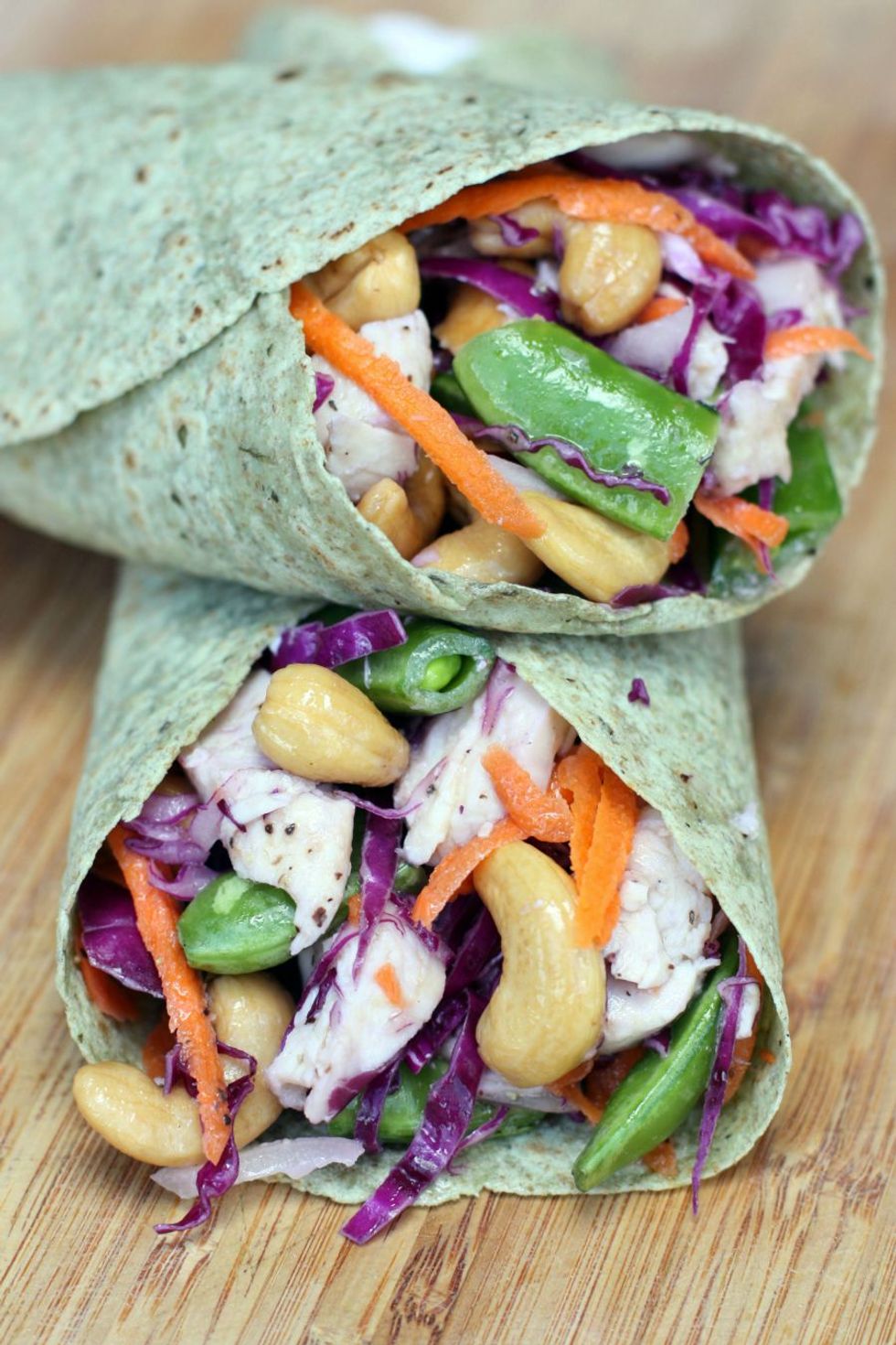 My favorite wrap that includes grilled chicken, cashews and snap peas with a delicious vinaigrette!