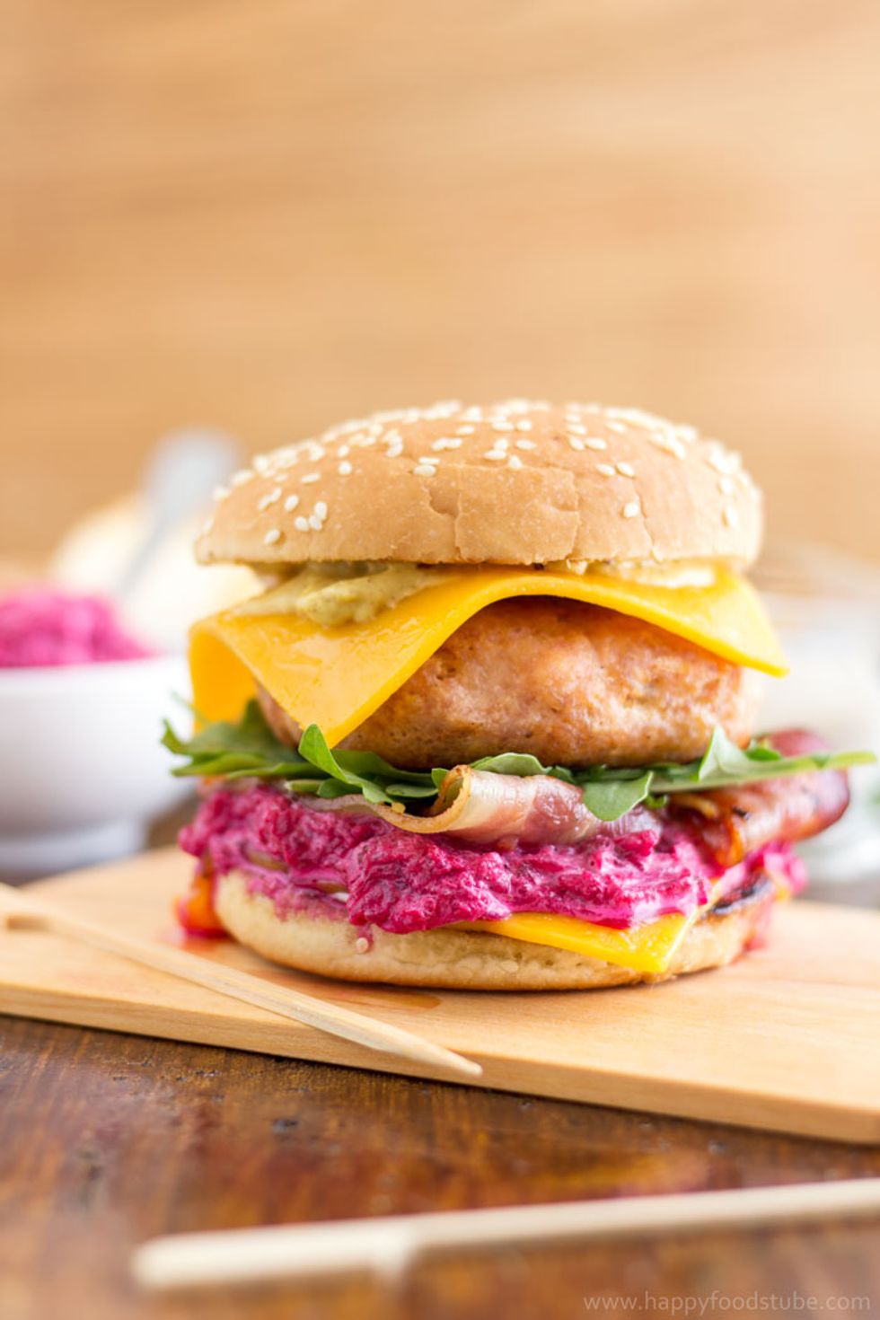 Chicken Cheeseburger with Beet Mayo