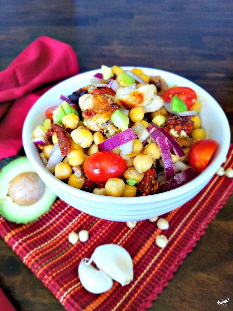 Chickpeas are hearty, healthy and filling. This Chicken Chickpea Salad combines most of the colors of the rainbow in this delicious dish.