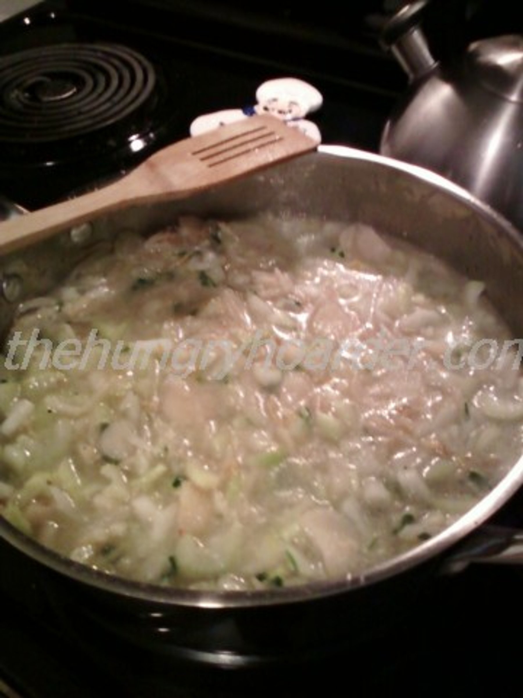 Stir in chicken broth; cook over low to medium heat about 10 minutes.