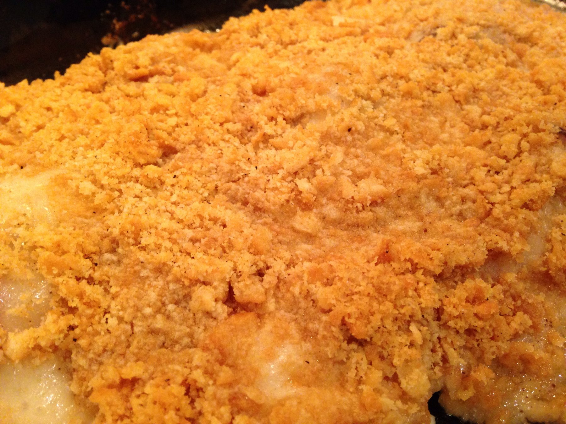 Layer the chicken in the bottom of the baking dish. Then, layer with ham slices and the cover with shredded swiss...