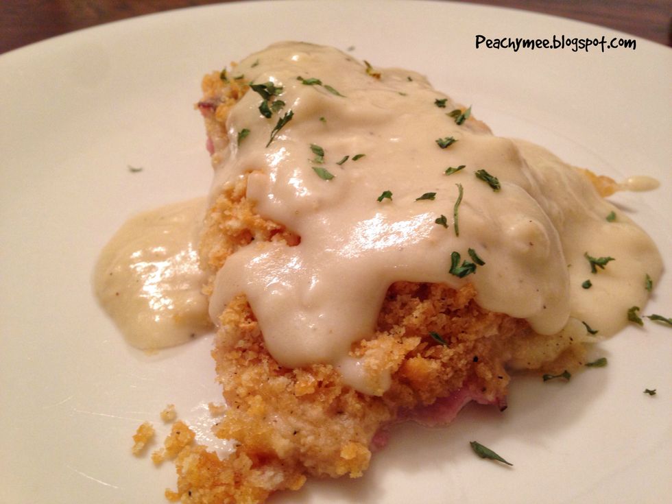Layer the chicken in the bottom of the baking dish. Then, layer with ham slices and the cover with shredded swiss...