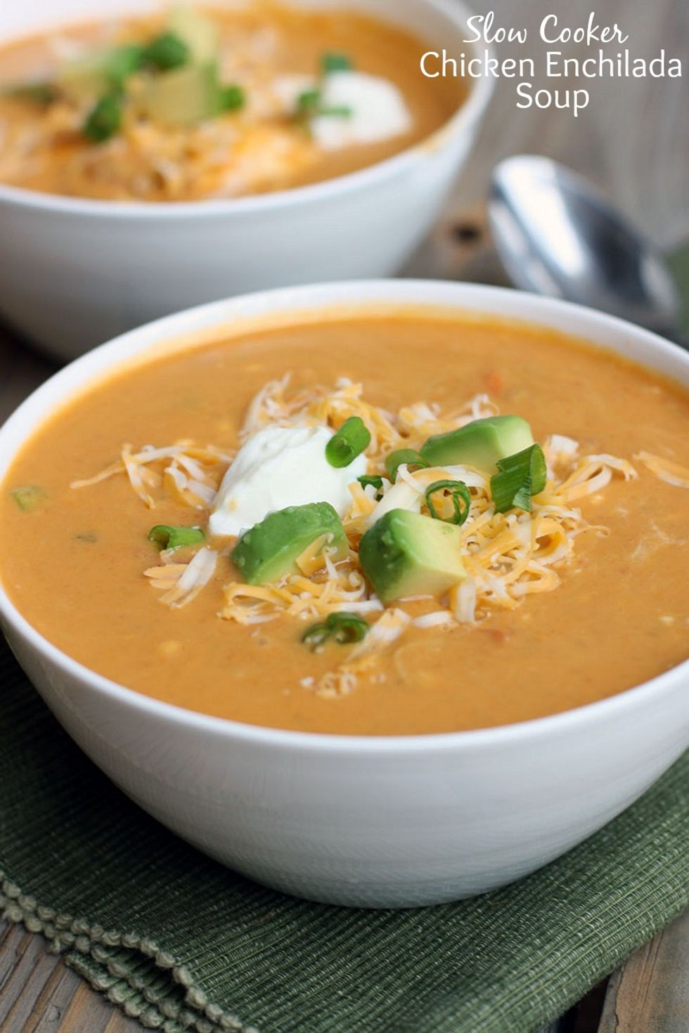 The yummiest Chicken Enchilada Soup made from scratch (no canned enchilada sauce)!