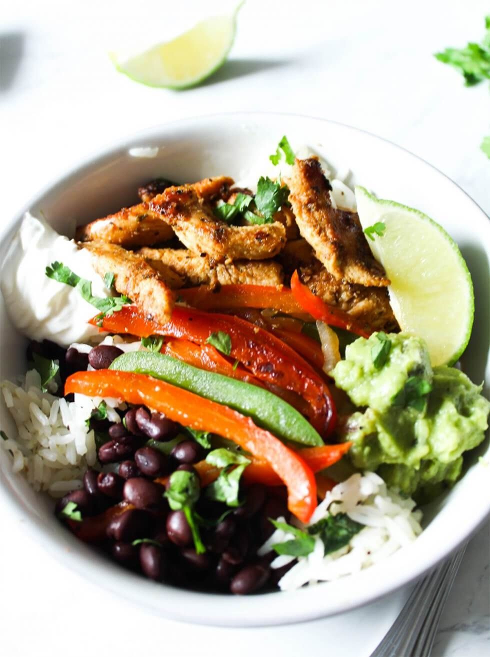These chicken fajita bowls are easy, delicious, and healthy. Skip the tortilla and add some cilantro-lime rice. This fajita bowl is all you need for a healthy and delicious meal.
