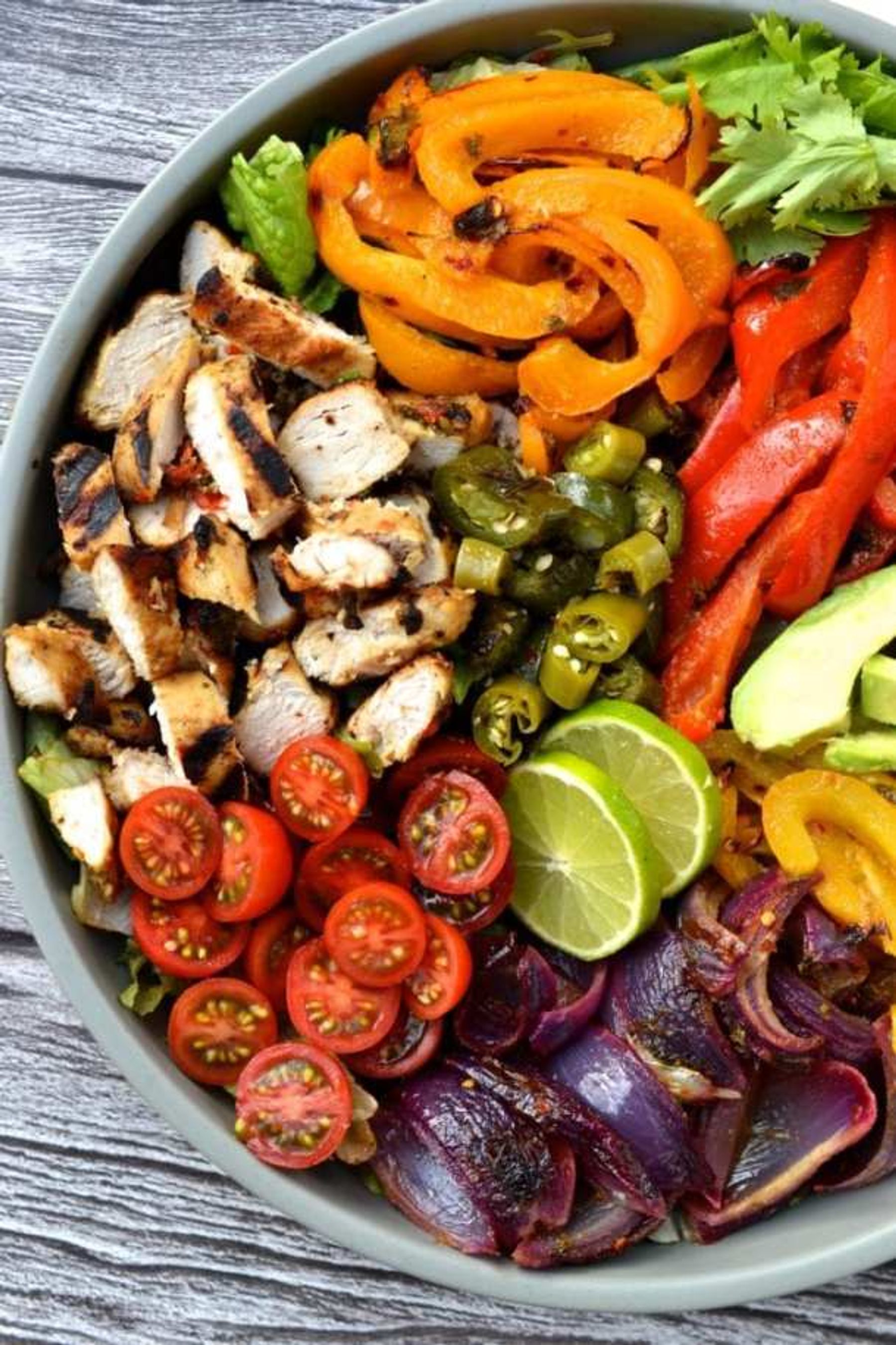 A healthy and delicious salad packed with chicken, roasted veggies and loads of mexican spices. (Paleo, SCD, Grain/Gluten Free, Dairy Free, Low Carb)