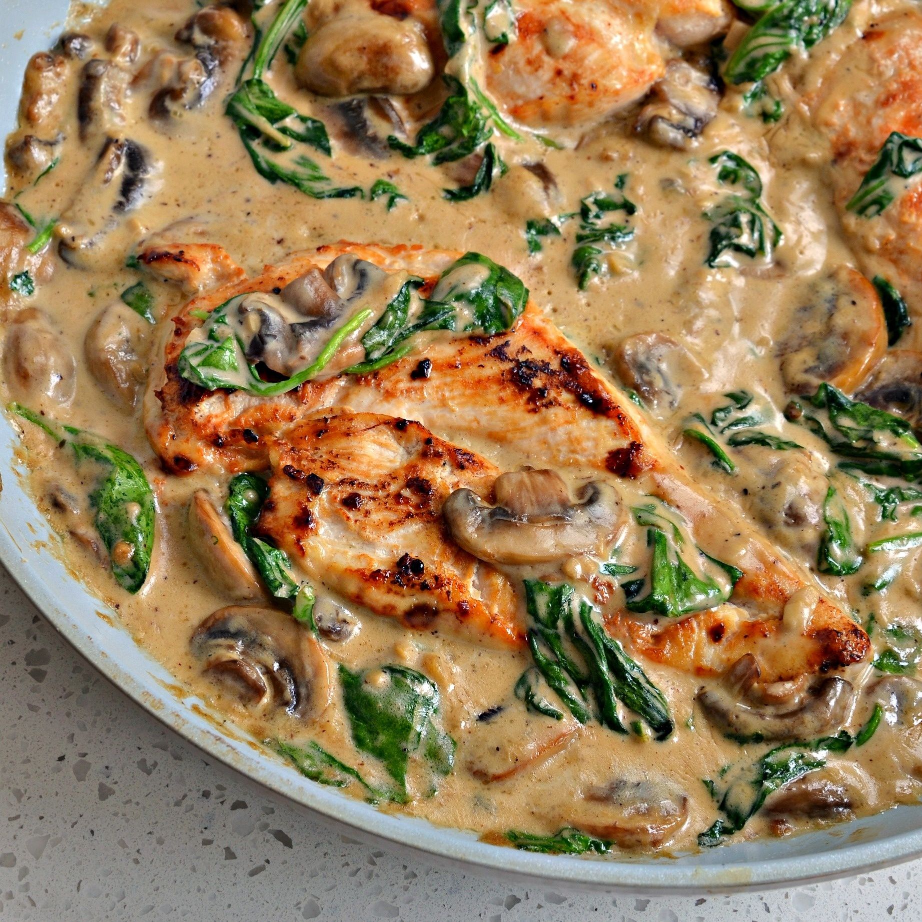 This recipe for Chicken Florentine combines golden brown chicken breasts, mushrooms, spinach and garlic in a creamy white wine Parmesan sauce that will knock your socks off. I love to serve this family favorite over rice, angel hair pasta or Garlic Mashed Potatoes with Bacon and Chives.