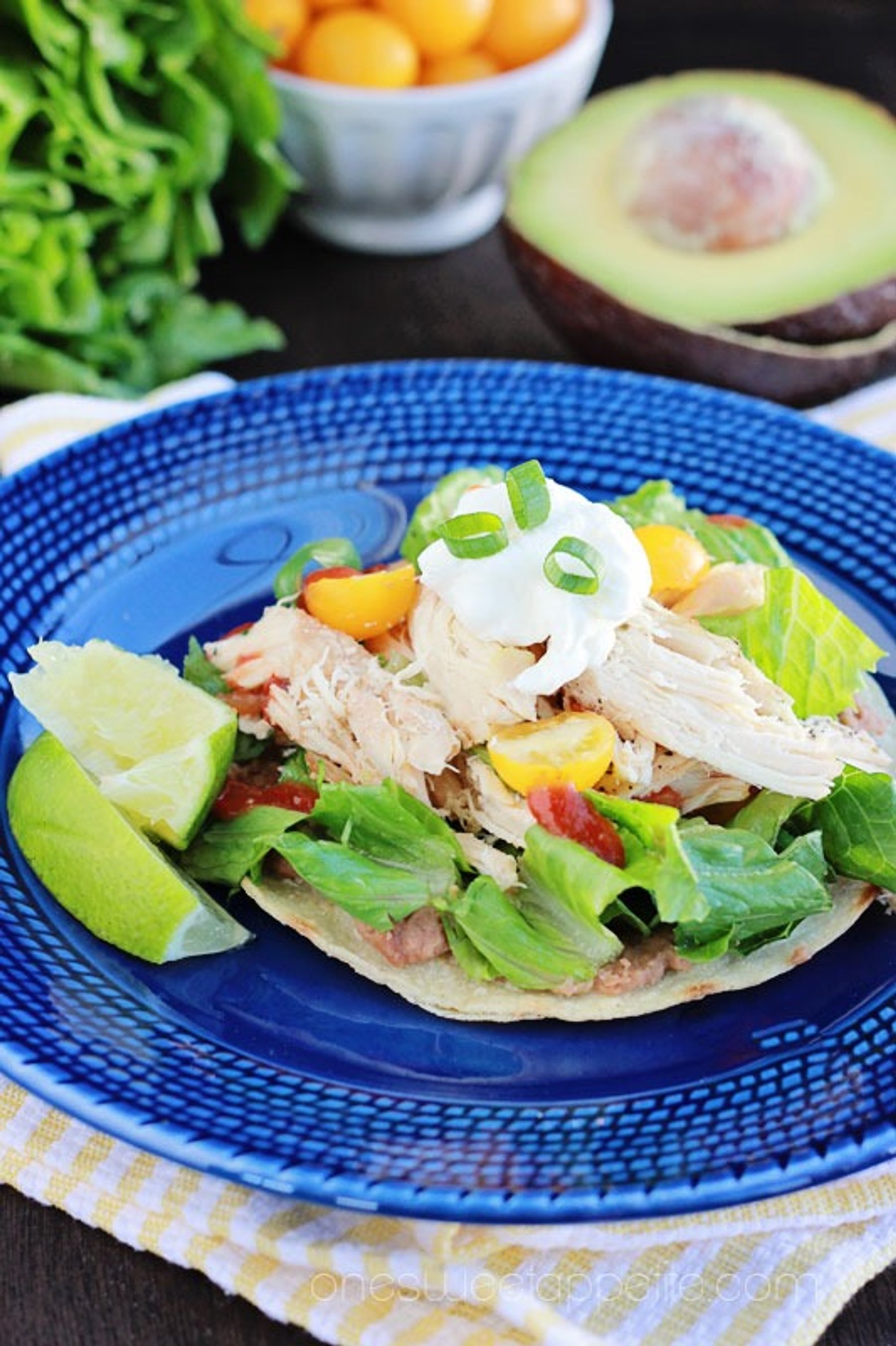 Add the tang of lime to these chicken tostadas for a quick weeknight meal.