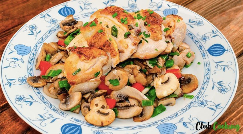 This Chicken Madeira is so easy to make even for the beginner cooks, but the taste is absolutely gourmet and restaurant worthy. Succulent chicken breast is sautéed till golden brown and served with divine Madeira cream sauce with mushrooms, asparagus and melted mozzarella cheese.