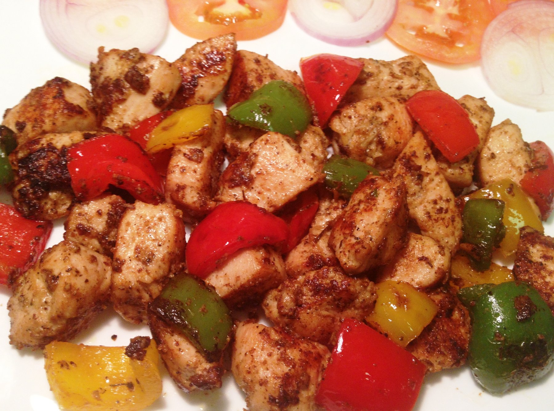Marinate all ingredients (except capsicum) for 1hour or overnight.