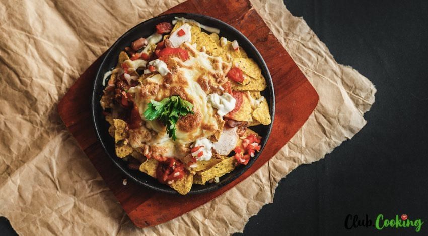 Spice up your taco Tuesday with this delicious chicken nachos recipe. It is a perfect starter for your Mexican fiesta, corn chips are piled high with flavored chicken, melted cheese, quick guacamole and garnishes.