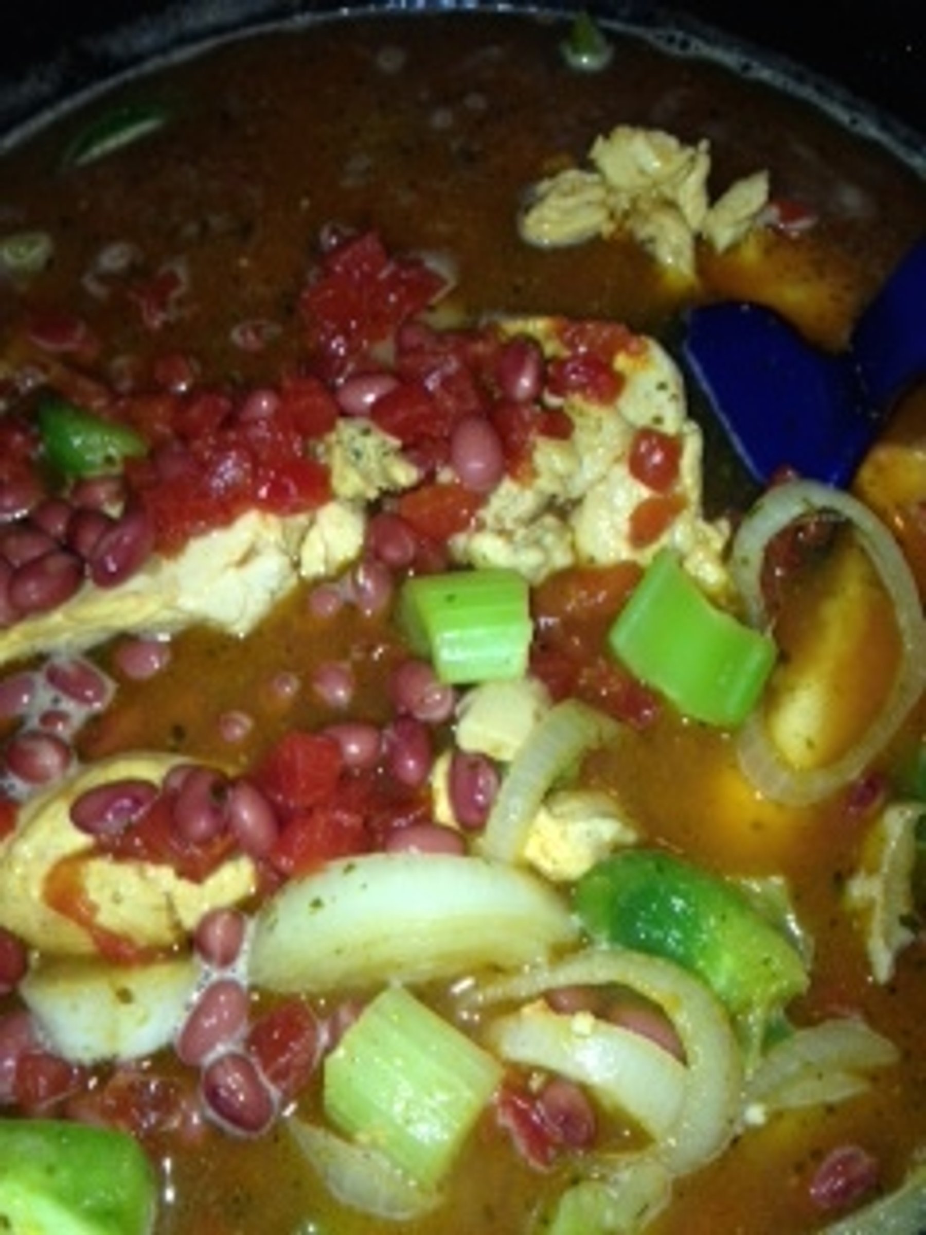 Sautee chicken in oil and garlic. Add onions and green peppers. Add Mrs dash table blend, season salt and black pepper. Add 2 cups of long grain Uncle Ben's brown rice. Add 4 cups of water, Add chopped celery and a can of Goya pink beans or a can of your choice. Add a package of sazon seasoning and a can of diced tomatoes with peppers