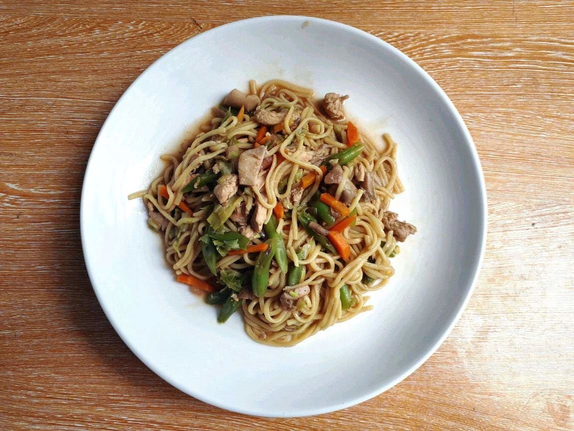 Chicken Pancit Canton is a filipino version of egg noodle dish that is mixed with chicken, mushroom, and vegetables