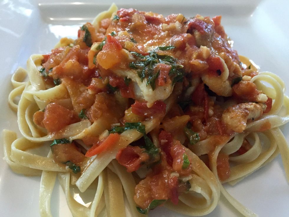 This was really easy. I know it always seems daunting to make your own sauce, but it is so worth it! This pasta dish came together in less than 30 minutes! We have an abundance of fresh basil in the garden that I wanted to use and this dish is super basil yumminess! The butter helps smooth the acidity of the tomatoes and everybody licked their plates clean!