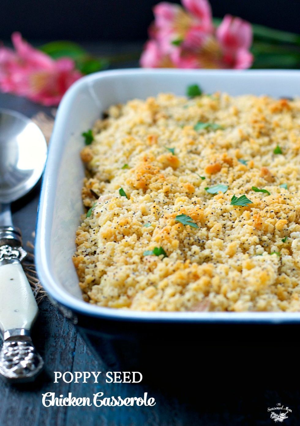 An easy, freezer-friendly CHICKEN POPPY SEED CASSEROLE is the perfect comfort food dinner for a cold evening! A favorite on the blog for years!