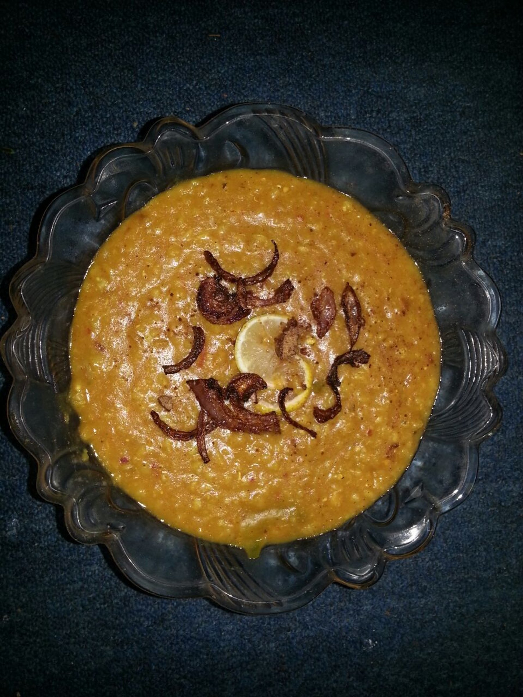 Add mixed lentils and porridge and water in pressure cooker and cook 15 minute on medium flame. Pour the lentils and porridge mixture in a big pan and add chicken, salt and all spices cover the lid for 25 minutes and cook on low flame. After 25 minute blend the porridge with hand grinder or whisk. Serve in a pot and garnish butter and brown onion. Yummy chicken porridge is ready.