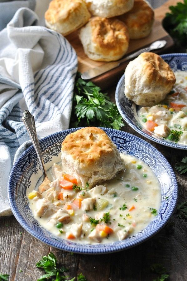Serve an easy Chicken Pot Pie Soup from scratch with a basket of warm, flakey biscuits. This simple dinner is the perfect comfort food for a chilly day — and it's ready in 30 minutes!