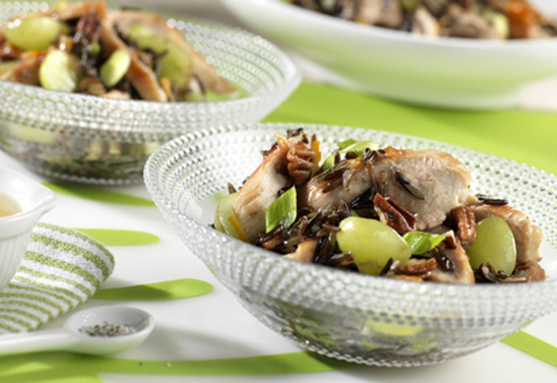 Chicken Salad with Rice, Pecans, Grapes, and Orange Dressing