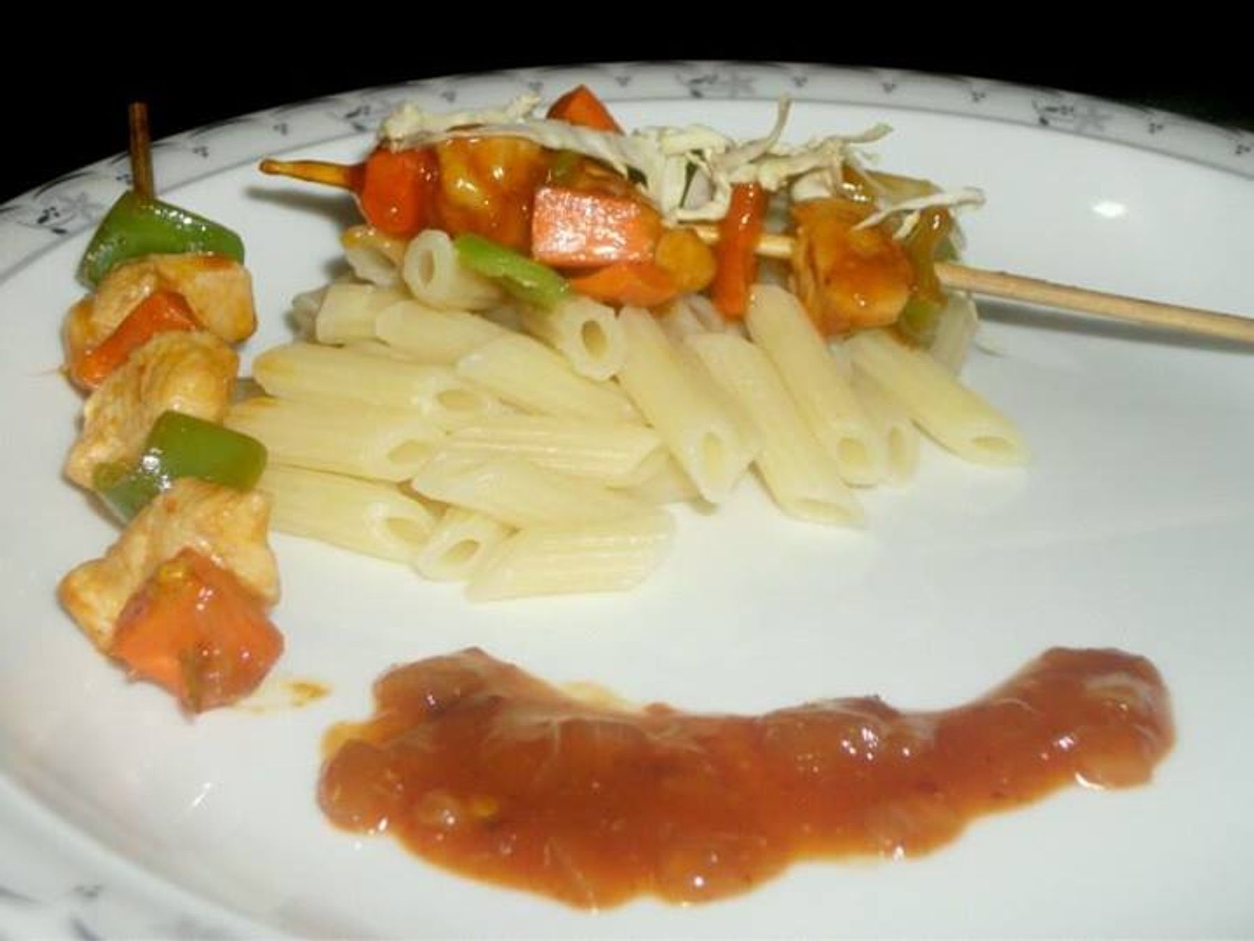 Marinate chicken with garlic paste, tomato ketchup, chili garlic sauce, Worchester sauce, salt, black and white pepper, chili powder, oil and corn flour. Set it aside for 1 hour.