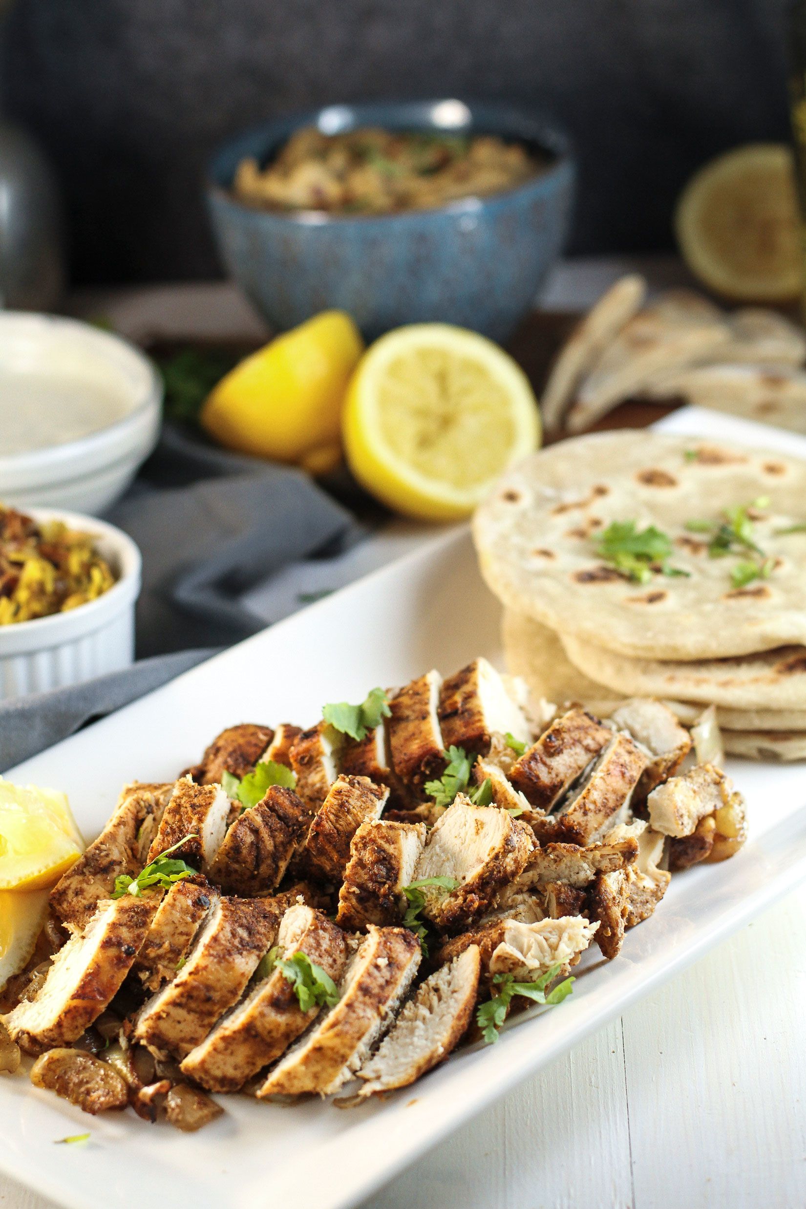 1. Add all the spices, lemon juice, garlic and olive oil to a bowl. Whisk well and toss in the chicken. Make sure the chicken is completely coated in the marinade. Cover with plastic wrap and refrigerate...