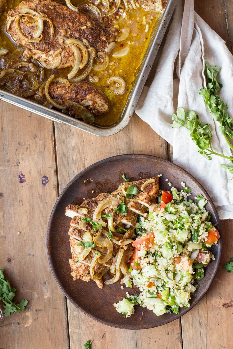 Chicken Shawarma - the Middle Eastern gyros or tacos. Amazingly flavorful healthy baked chicken, with a delicious warming spices marinade of the Middle East. Serve it with my favorite garlic yoghurt sauce.