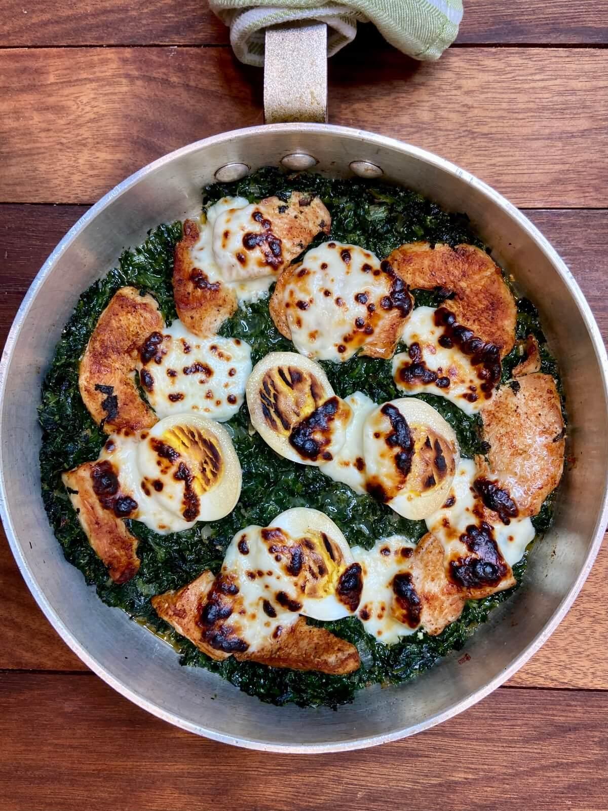 Chicken Spinach Mozzarella is a wonderful weeknight dish. It’s ready in about 30 minutes, healthy, and budget friendly. My twist to finish this dish under the broiler will give it a slight char that brings out some summer memories of grilled food.