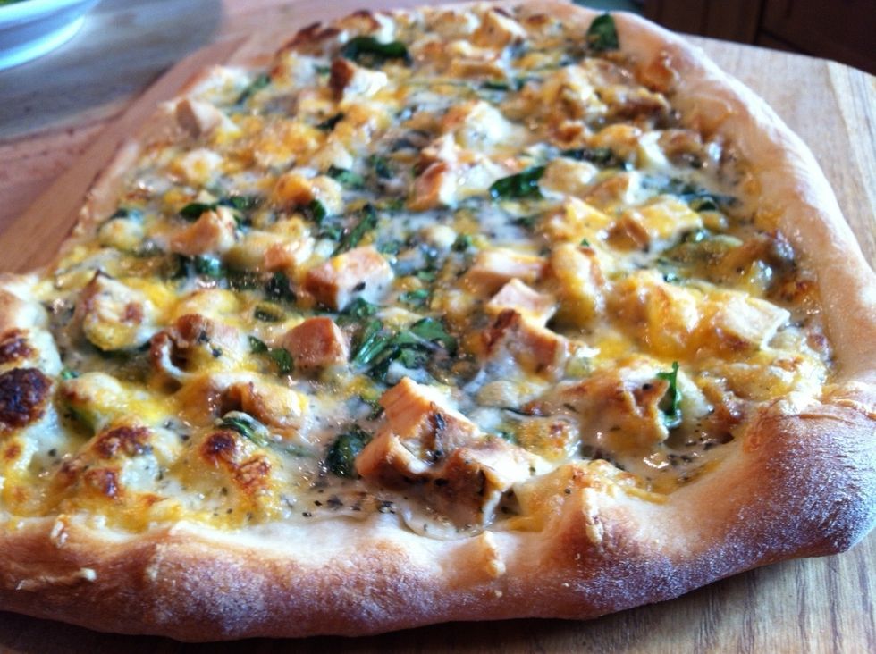 Chicken Spinach Pizza with Garlic Cream Sauce