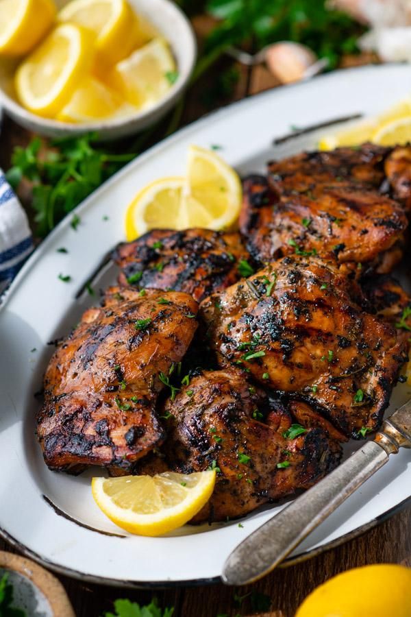 A savory chicken thigh marinade with soy sauce, honey, lemon juice, garlic and herbs turns this affordable cut of meat into a tender, juicy and flavorful meal. Whisk together the simple ingredients in just 5 minutes, add the boneless, skinless chicken thighs, and a few hours later (or the next day) finish them on the grill or in the oven. The healthy and easy chicken thigh marinade goes well with just about any of your favorite sides -- from rice to biscuits, mac and cheese to cornbread, salad and green beans!