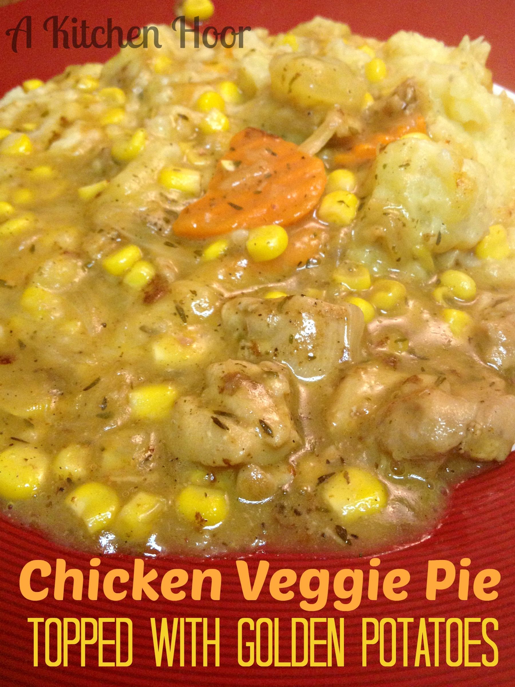 Chicken Veggie Pie Topped with Golden @KlondikePotatoes