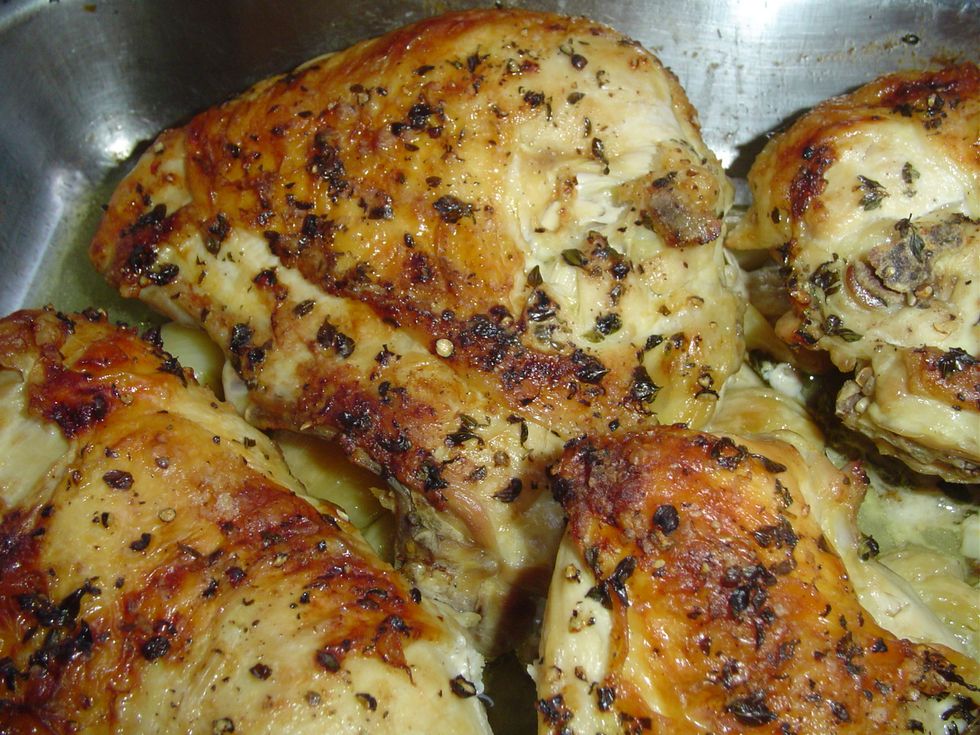 This is a take on the traditional french chicken that calls for 40 cloves of garlic. I used bone-in, skin on chicken breasts instead of a whole chicken. But if a whole chicken is on sale this week by all means do the whole chicken. I made sure the garlic cloves were placed under the chicken breasts so that they wouldn't burn during the cooking process.