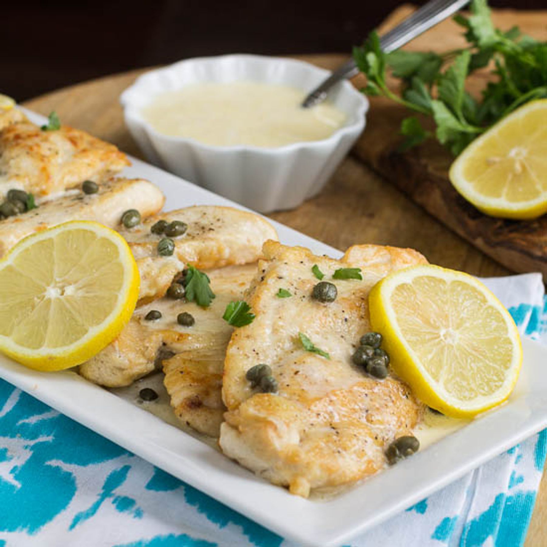 Pan-fried Chicken Cutlets with lemon butter sauce and capers. (Buca Di Beppo copycat)