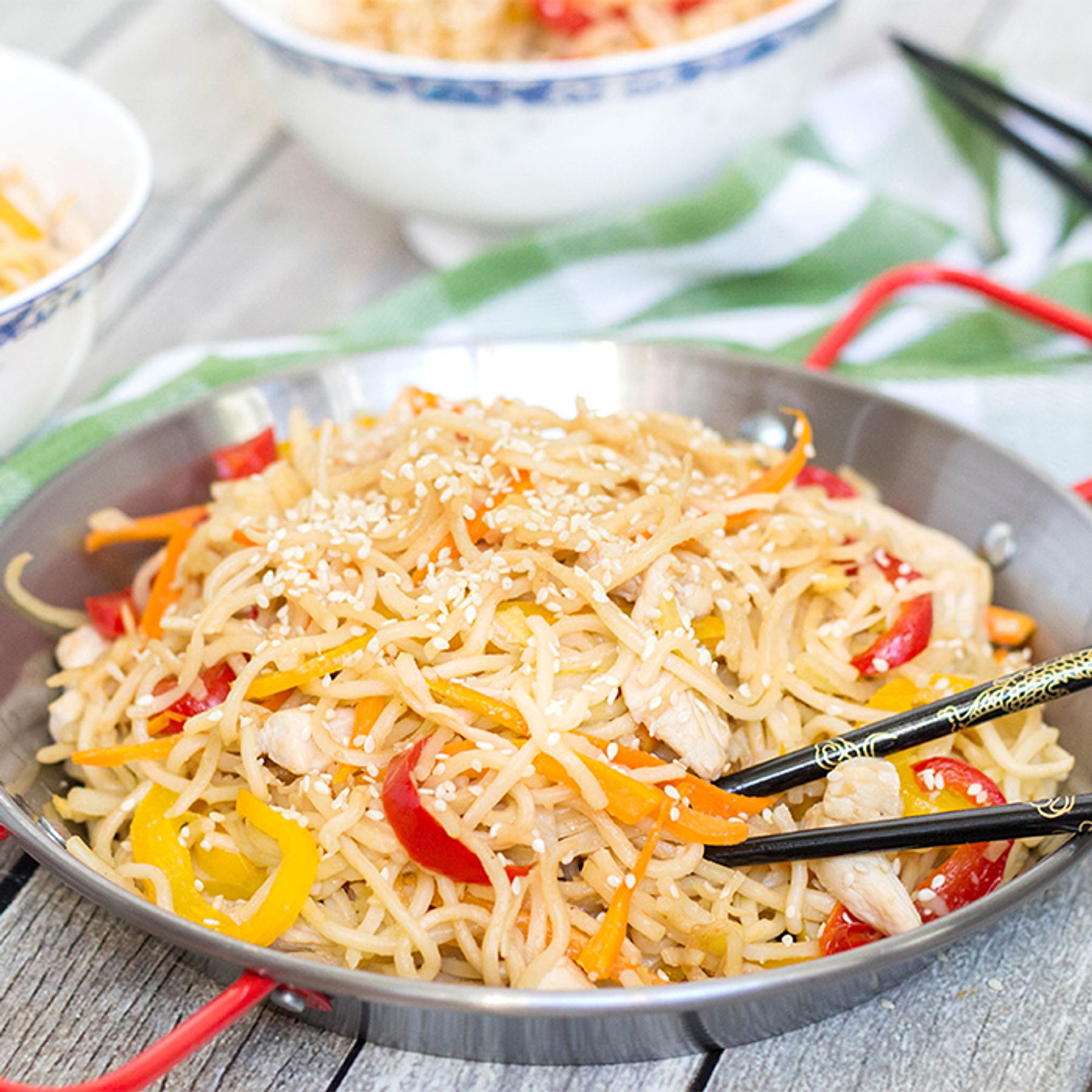 Who doesn\\\'t love a good Asian takeout? This Chicken Yakisoba made at home is even better. Chicken, noodles, and tons of veggies. Perfection!