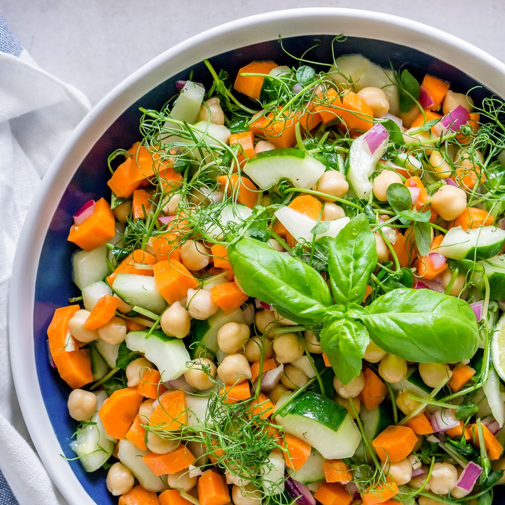 Chickpea & Pea Shoot Salad with Basil Lime Dressing