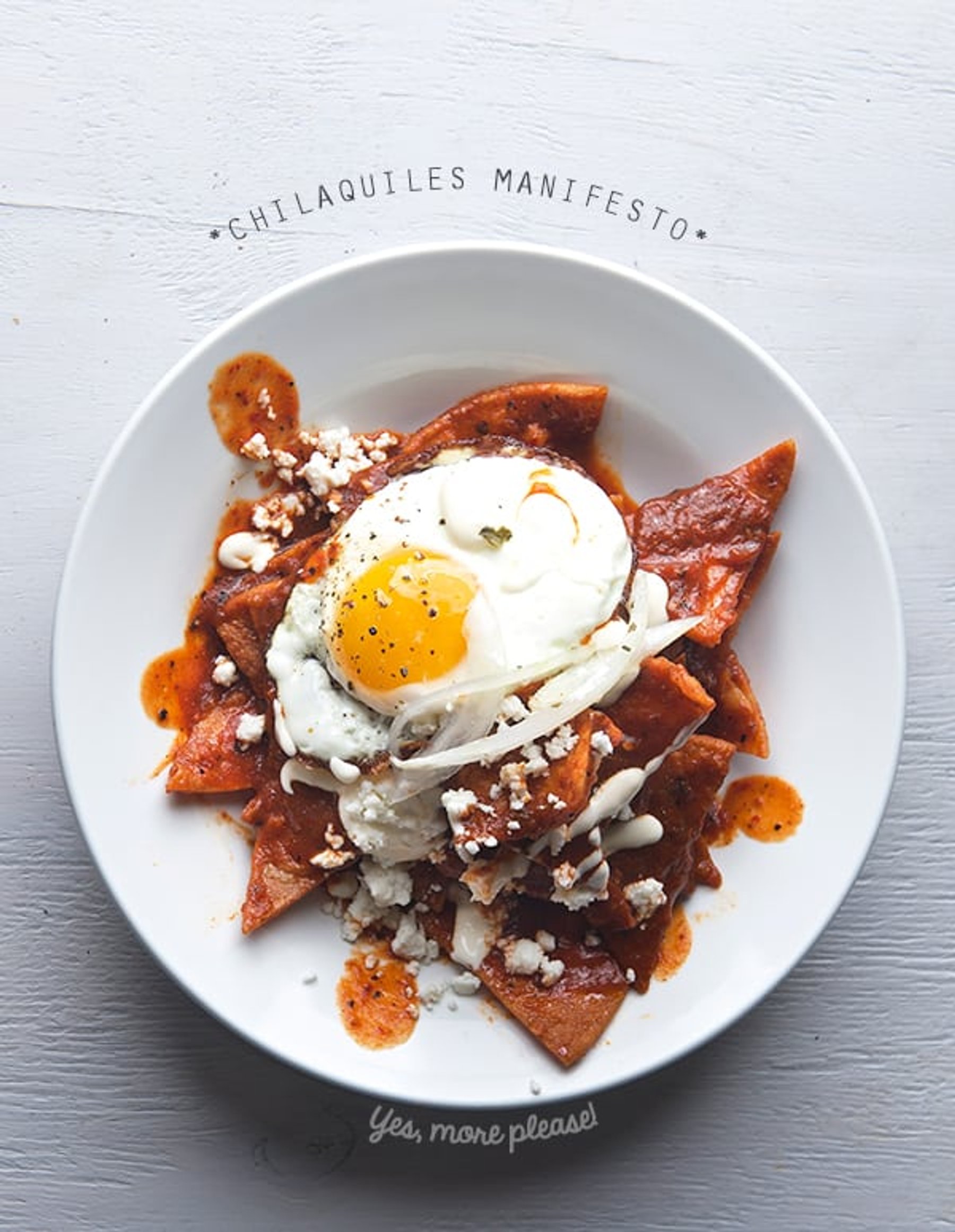 2 Recipes Rojos or Verdes. Chilaquiles Manifesto, is my proclamation of texture, flavor and sauce. For me, that is what Chilaquiles are all about. I want to rescue the Chilaquiles reputation. I believe the dish is all about the balance of texture, sauce, spice and attention to detail. I hope this manifesto will make you appreciate the difference between average and exceptional Chilaquiles.