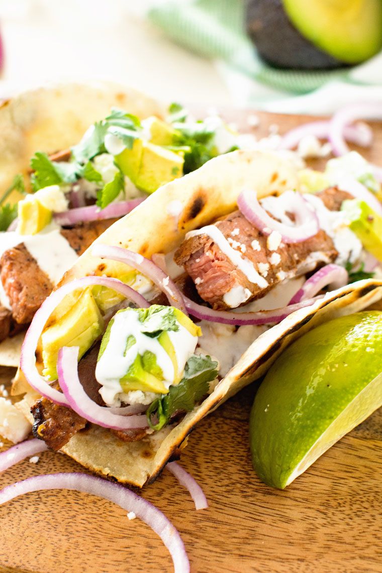 Tender, juicy flank steak marinaded in lime juice and then rubbed with spices. Then grilled to medium rare and sliced for these delicious Chile Lime Steak Tacos in a crisp corn tortilla!