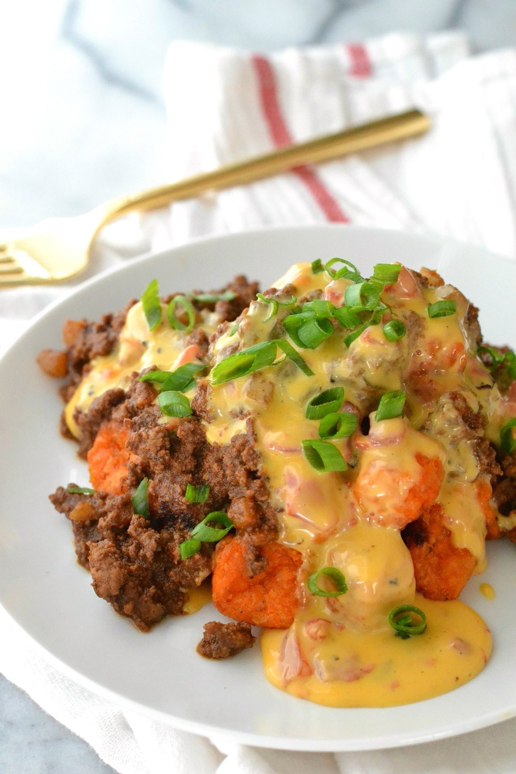 Chili And Cheese Sweet Potato Tater Tots