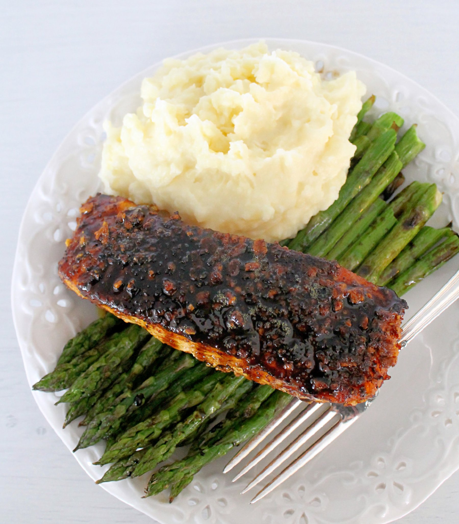 Chili Lime Almond Crusted Salmon with Maple Balsamic Glaze