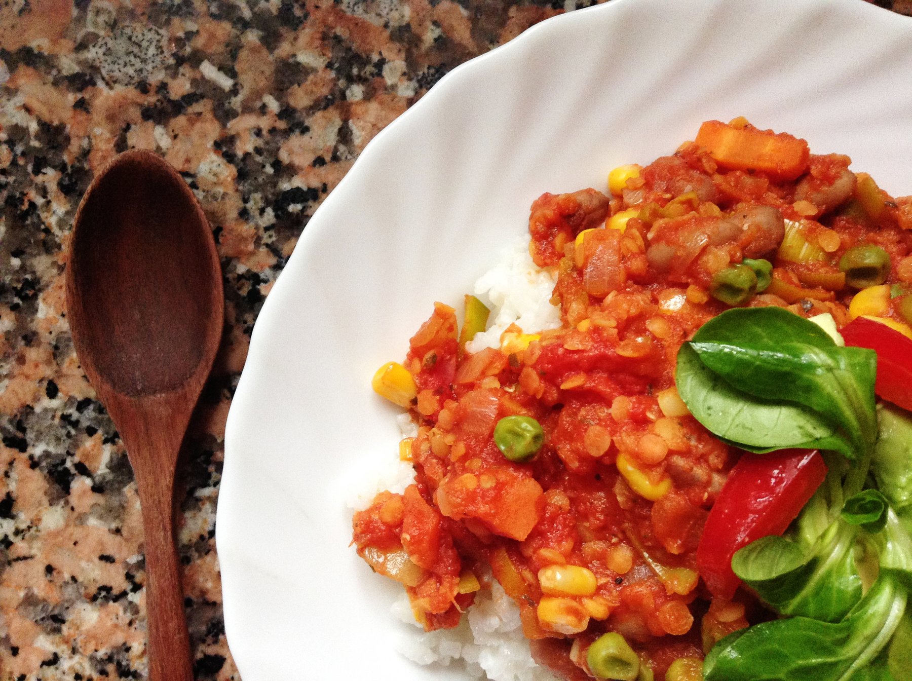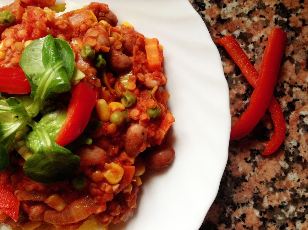 Delicious and hearty chili based on lentils. It\\\'s full of vegetables, beans, pulses and spices and I love this warming meal in the autumn and winter!
